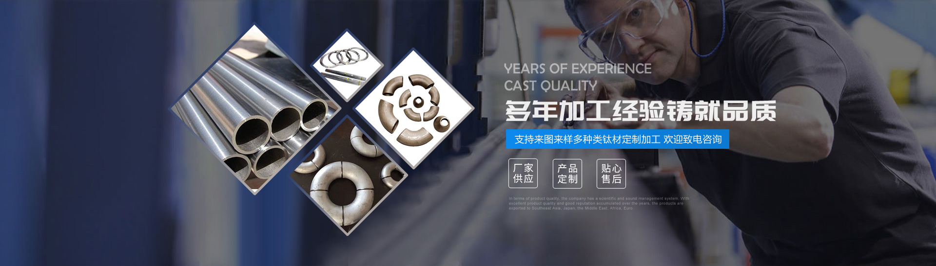 本公司的主營產(chǎn)品鈦制品有,鈦管,鈦棒,鈦彎頭,鈦法蘭,鈦管件,鈦標(biāo)準(zhǔn)件,鈦槽,鈦設(shè)備,鈦沖壓彎頭等